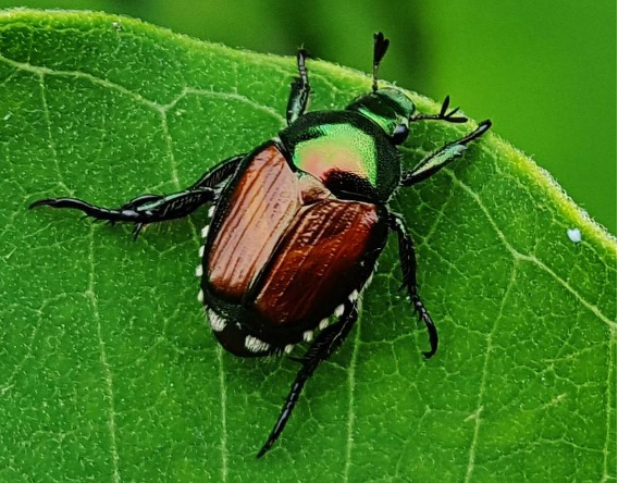 • The most effective way of lowering the beetle population is by using a granular grub control product called Milky Spore (there is an organic version).  It is broadcast to garden beds and grass areas during the summer and early fall and kills the larvae,(grubs) before they immerge into beetles. It tends to be quite expensive, so it’s great for small areas but difficult to use in large areas like parks.  Results differ but it usually takes at least a couple of years of application to see major improvement.