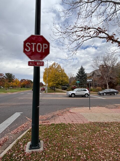 Myself and another LUN Board Member called and posted on 311 about this issue more than once. A couple months ago, Denver DOTI did place a new stop sign on the right-hand shoulder. Moral of the story is please do go to Denvergov.org and post an unsafe traffic situation, graffiti, leaking city irrigation, abandoned car and other issues.